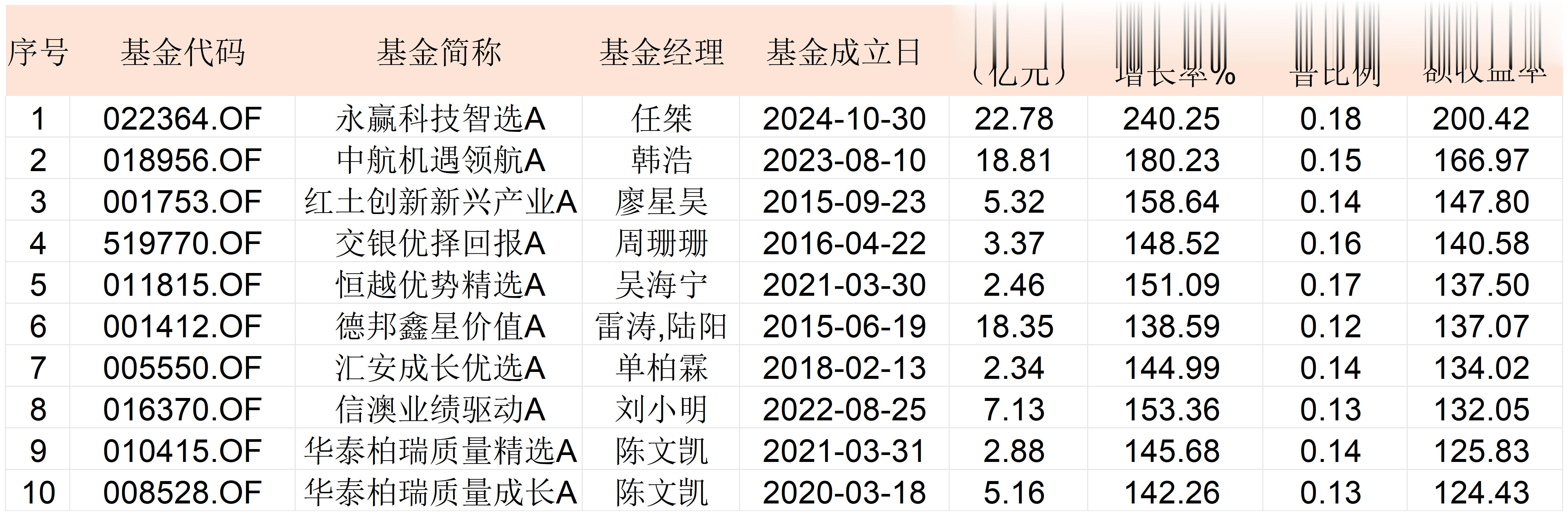 中航机遇领航混合基金以168.92%的收益率位居第二,红土创新新兴产业混合基金位居第三。从三只基金的持仓来看,多集中于科技制造板块,基金经理均围绕着算力进行较为集中的高仓位运作,这契合市场结构性的行情,从而斩获了较多的收益。