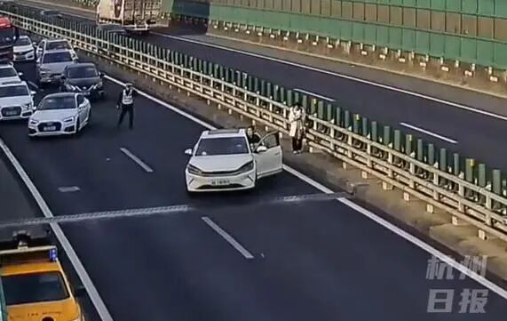 最近杭州就发生过一起新能源车事故:去年12月23日,一辆白色新能源车在高速上追尾,安全气囊弹出后触发了车辆自动保护,整车系统直接锁死,停在了最危险的第一车道,司机还被困在车里,情况特别紧急。还好杭州高速交警及时赶到,他们熟悉新能源车的操作,通过语音唤醒车机,切换到拖车模式,一起把车推到了应急车道,只用了3分钟就恢复了道路通行。