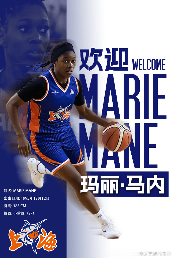 上海女篮官宣:外援玛丽-马内正式加盟俱乐部