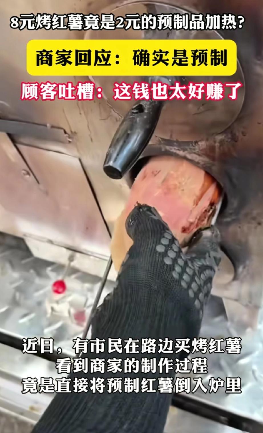 万万没想到!女子在街头看到有卖烤红薯的,突然心血来潮想要上去买一个,可在等待过程中,却发现制作过程和她想象的不一样,竟然是半成品“预制”的,而摊主也是大方承认,女子:你这钱也太好赚了吧 女子本想去买那种“铁皮炉子+炭火+现翻烤”的传统烤红薯,想象中是外皮烤得发黑、掰开就冒甜味的样子。结果排队时一抬眼,发现摊主没往炉子里放生红薯,而是从写着“冷冻烤红薯”的半成品袋子里直接倒出来加热。被问到这事时,摊主很爽快地承认:这就是预制的,加热一下就能卖。 要知道,这预制红薯成本才2块钱,经摊主这么一折腾,就卖到8块钱了。而且这种预制烤红薯在行业里早就不是秘密——工厂统一蒸烤、速冻后配送到摊点,摊主卖的时候只需解冻加热。对摊主来说,这样不用清洗、控温,也不用长时间守着炉子,出摊效率高,库存还好管理。 看到这事儿,有网友吐槽: “花8块买2块的预制货,这不是把我们当冤大头吗?” 咱们花高价买烤红薯,图的就是那股现烤的烟火气和实实在在的口感,这种预制的能比吗,太让人失望了! 我们怀念的,真的是那一口红薯吗?不全是。我们怀念的是那个等待的过程,是那缕温暖的烟火气,是那份简单而真实的快乐。 当什么都变成流水线上快速复制的产品,连烤红薯都能“预制”时,我们生活中那些小小的、确定的幸福感,好像也被一点一点地偷走了。这感觉,就像心里某个温暖的角落,突然被浇了一盆冷水。 我们在追求极致的效率和便利,但代价却是生活中那些真实的、需要时间沉淀的味道和情感在悄悄消失。 烤红薯的“塌房”,塌掉的也许不只是一个美食的真相,更是很多人对传统生活方式的最后一点念想。 在一切都加速的时代,有些笨拙的、缓慢的、带着烟火气的美好,反而显得更加珍贵。下次再闻到烤红薯的香味时,我们或许该问一问:这香甜的背后,还剩多少真实的温度?
