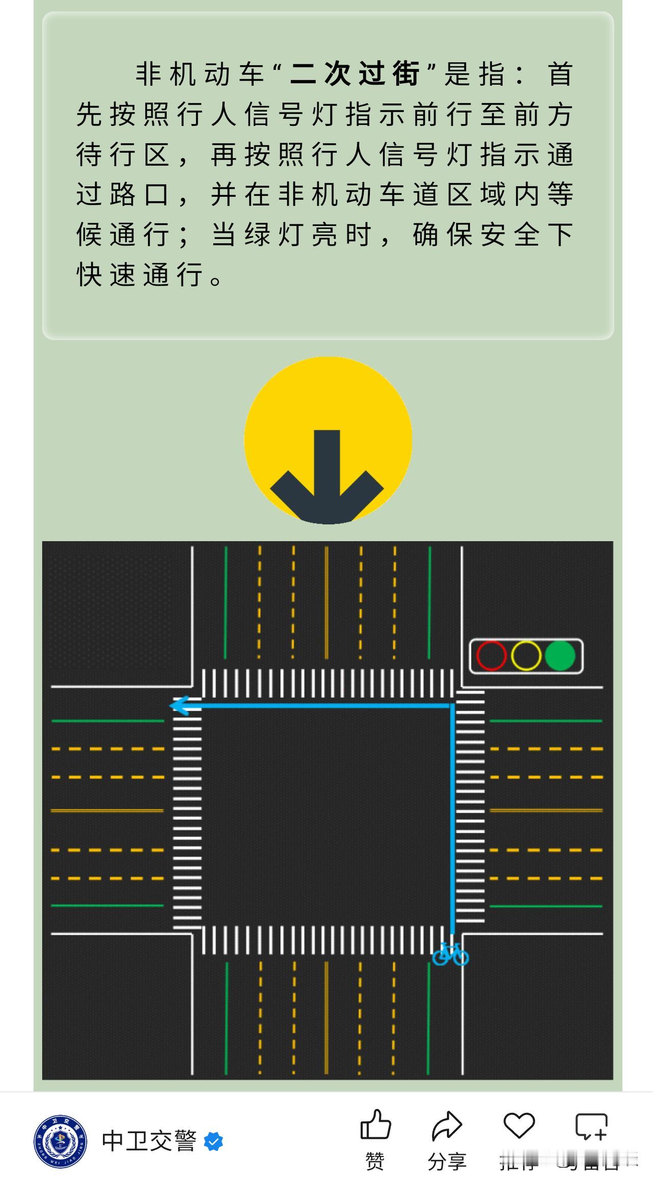 早出发、靠右行、慢慢开! 广州两部门联合发出文明出行倡议书! 1️⃣、早出发:提前规划好时间,预留出时间冗余,途中堵车,修路,红绿灯要考虑进去。 2️⃣、靠右行:有非机动车道的走非机动车道。 没有非机动车道的靠最右侧车道的右侧行驶。 共享车道也尽量靠右行驶,毕竟还有机动车行驶。 过十字路口,没有过街非机动车道的,就在人行横道下车推行。如图二、三。广州很多这种路口,如宝岗大道中与南田路交叉路口,通过主干道后,到达安全岛后,需要下车推行通过人行横道,才能到达主路的非机动车道 3️⃣、在非机动车道内行驶,按照规定是不能超过15公里,即使前方没有车辆和行人的情况下可以快一点,但也不能超过25的最高限速,避免遇到紧急情况无法及时反应造成事故。 毕竟非机动车道内,除了电动自行车,该有单车,以及电动轮椅等。他们作为慢速车,也更要注意安全。 六周岁以下的儿童,还是要按照安全儿童座椅,增强安全性。小朋友太小容易左右摇晃,在后座坐不稳,甚至会睡觉等。就遇到过一个小女孩在后座睡着了,幸好她妈妈及时发现,拖下衣服把小朋友捆在自己腰上。