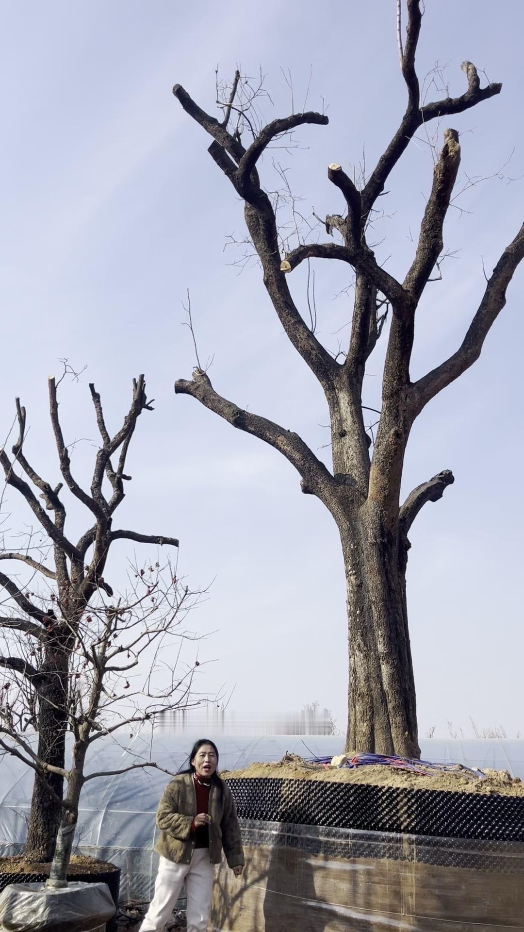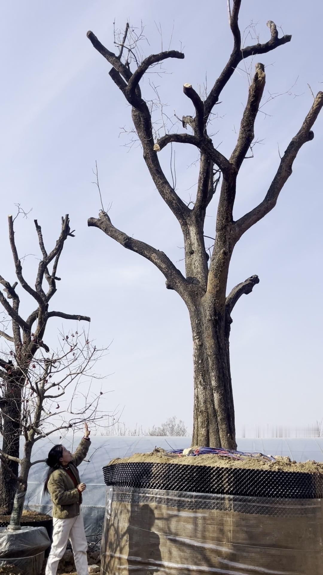 不是所有柿子树都能镇住这种场面,看这棵百年柿树,规格在六七十公分,高分枝骨架非常漂亮,放到庭院绝对有面。