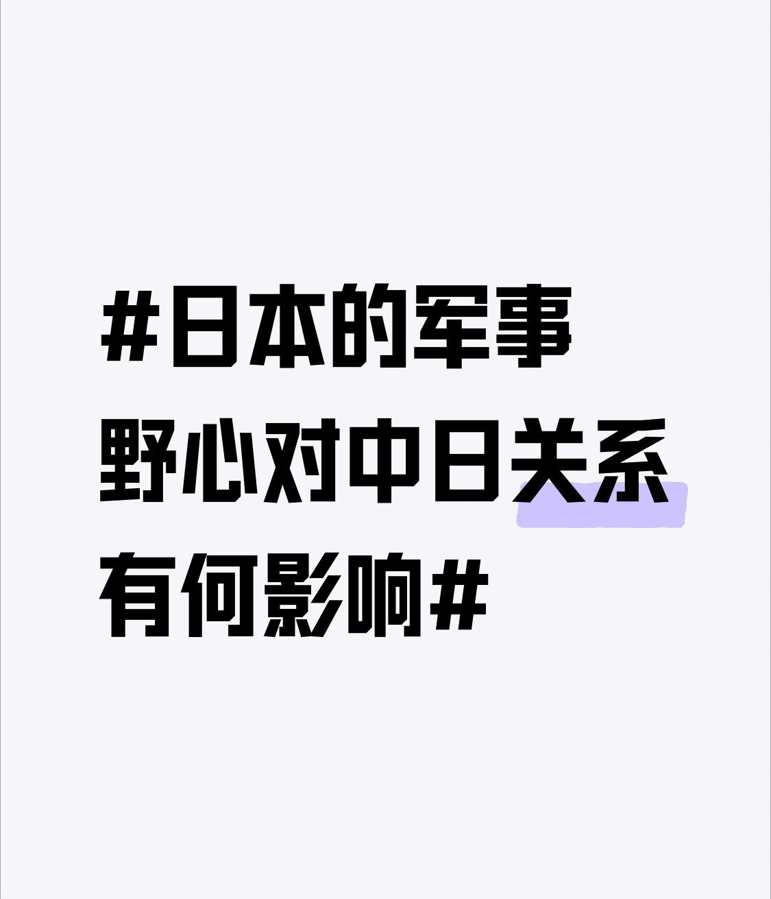 日本的军事野心就像一颗定时炸弹,严重破坏着中日关系。近期日本非法行径不断,通过新安保法案,妄图解禁武器、滥用“自卫权”,野心昭然若揭。 历史上日本的侵略恶行本就给中国带来巨大伤痛,如今其军事野心复燃,让两国之间的历史阴影再度加重。若日本武力介入台海,美国智库兵推显示,即便不介入都有伤亡,介入则伤亡“倍数暴冲”。我国军事专家也表示,任何敌人用武器威胁我国都是徒劳。日本的这些野心和举动只会加剧两国紧张,让中日关系更不稳定。我们要警惕,相信国家会守护好我们。
