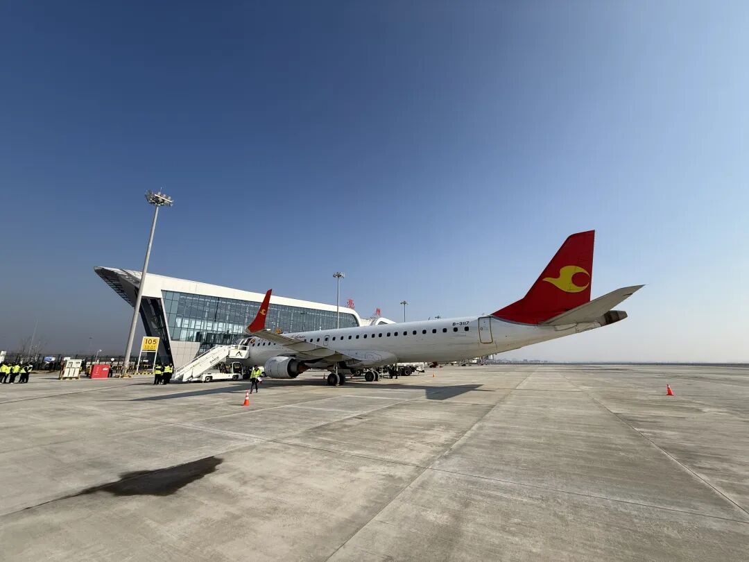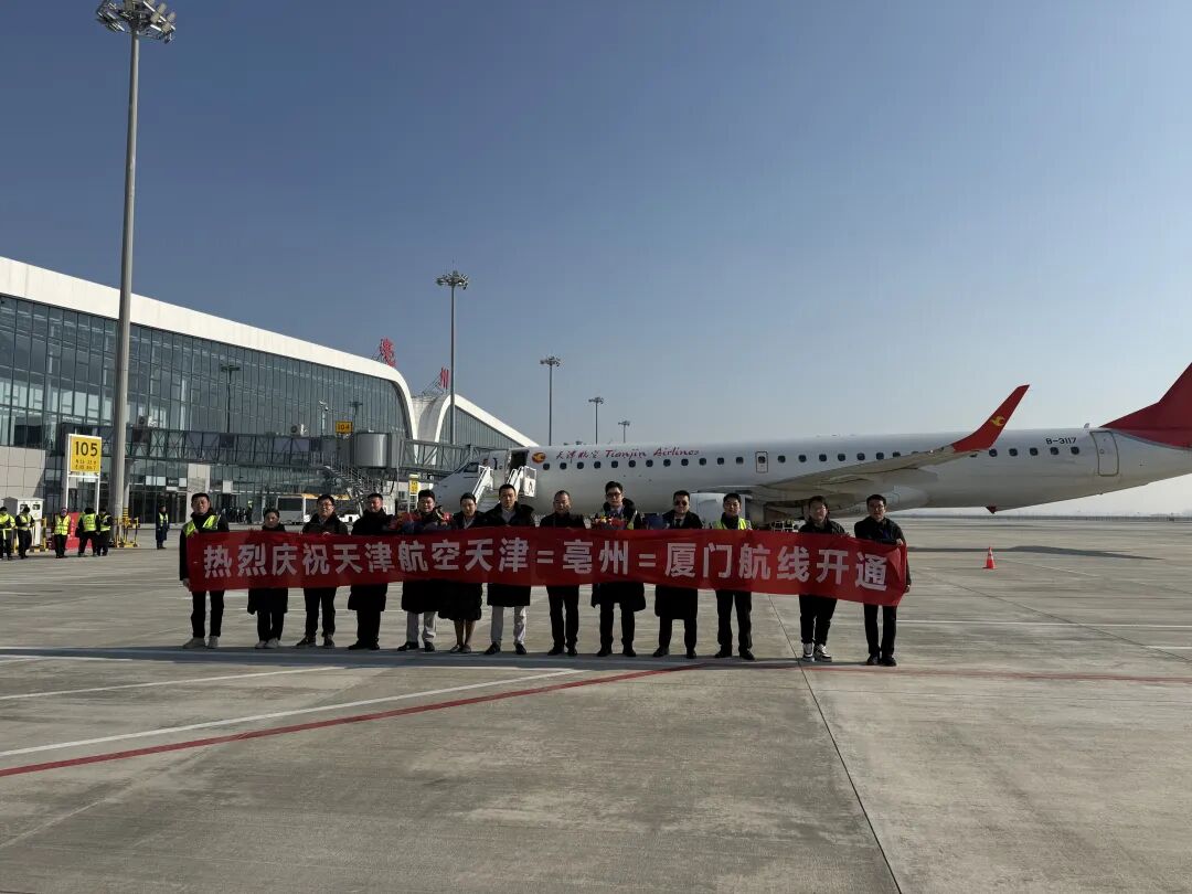 1月2日10点28分,一架来自天津的客机满载着新年的祝福顺利抵达亳州机场,天津=亳州=厦门往返航线正式开通。