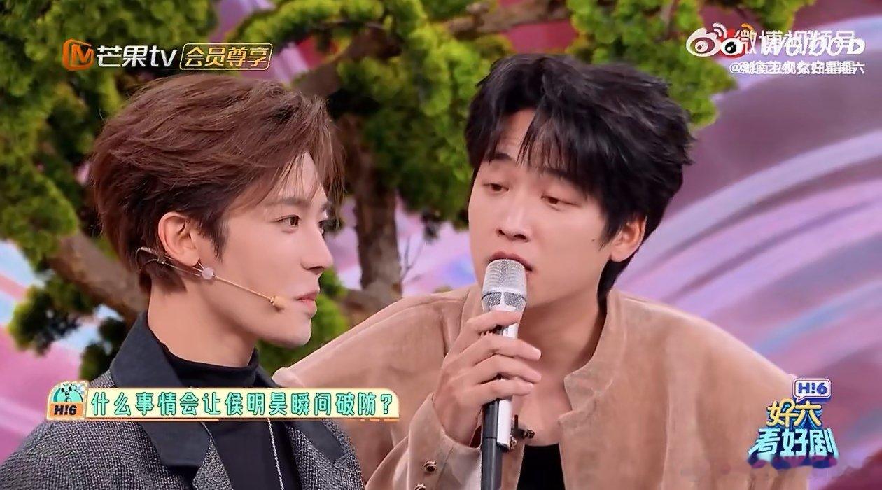 让侯明昊破防只需要一句话你好星期六 哈哈哈哈哈,想让侯明昊破防那叫一个简单!节目里被说“唱歌水平没长进,很普通没特色”,他翻手卡时身体一震,两眼一黑差点没缓过来,那又无奈又好笑又委屈又惊讶的样子,精准戳中他唱歌的“小在意点”啦!
