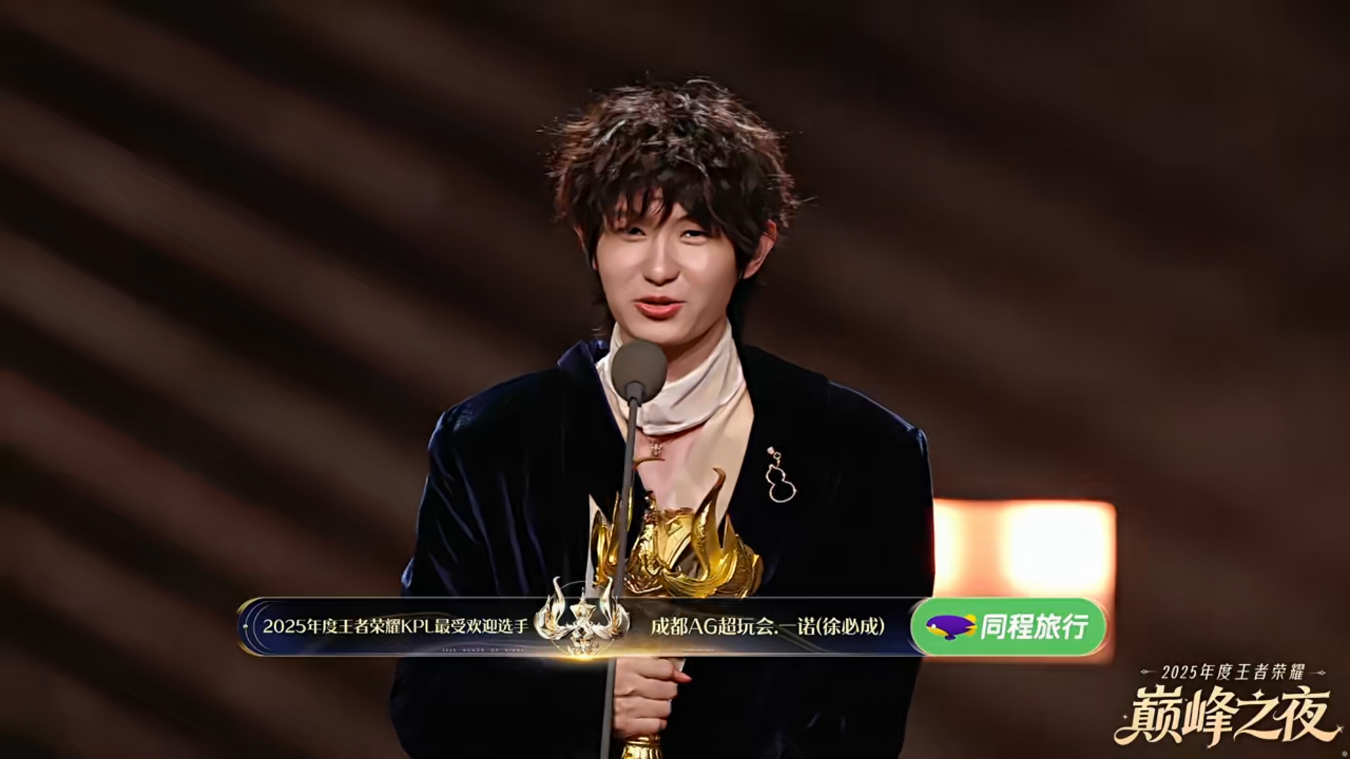 虎扑01月03日讯2025年度王者荣耀KPL最受欢迎选手:一诺。