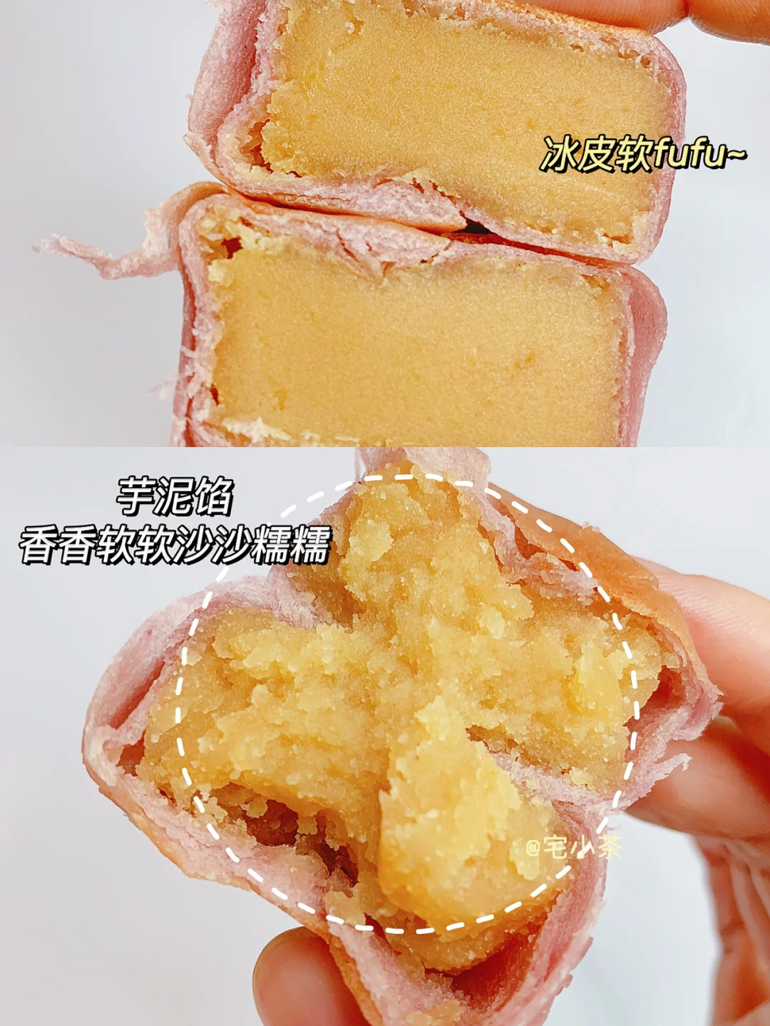 介个是冰皮的,香香软软,低糖低油,紫薯芋泥微微甜,不齁。