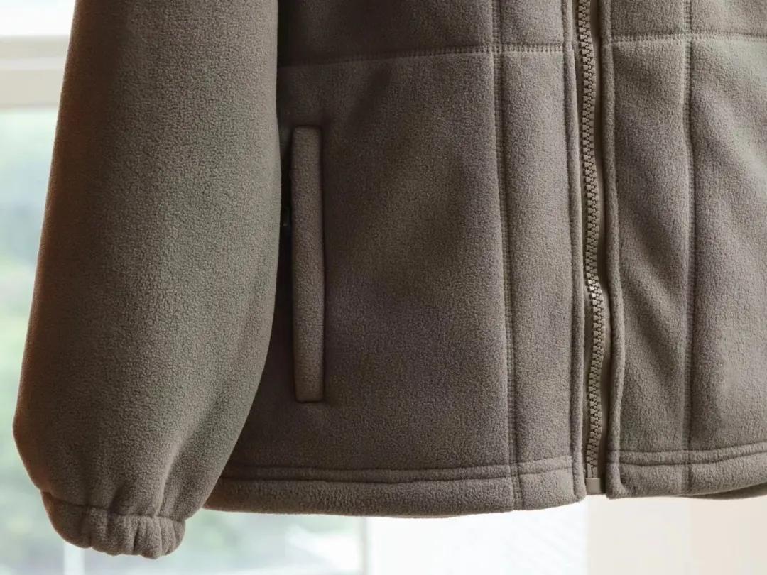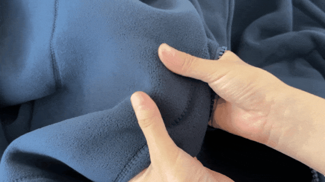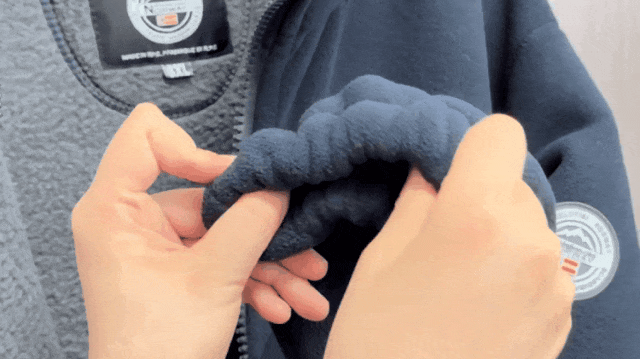 而且,它不像便宜抓绒只有一面起毛,它是双面紧密压绒结构,摸起来顺滑细腻,看不到一根线头。