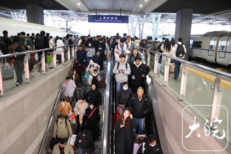 上海虹桥站迎来元旦返程高峰,旅客正有序乘降。李威昊摄