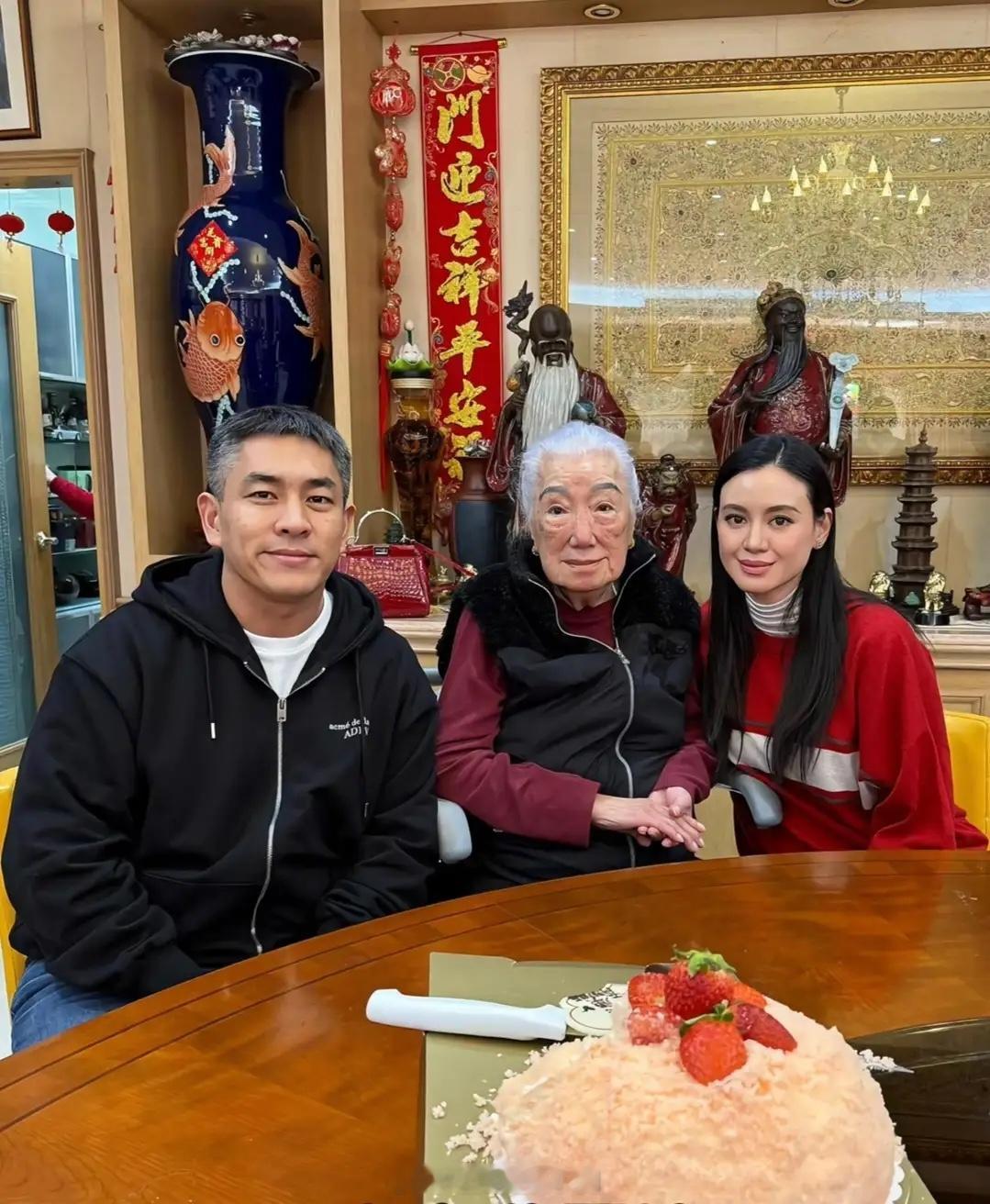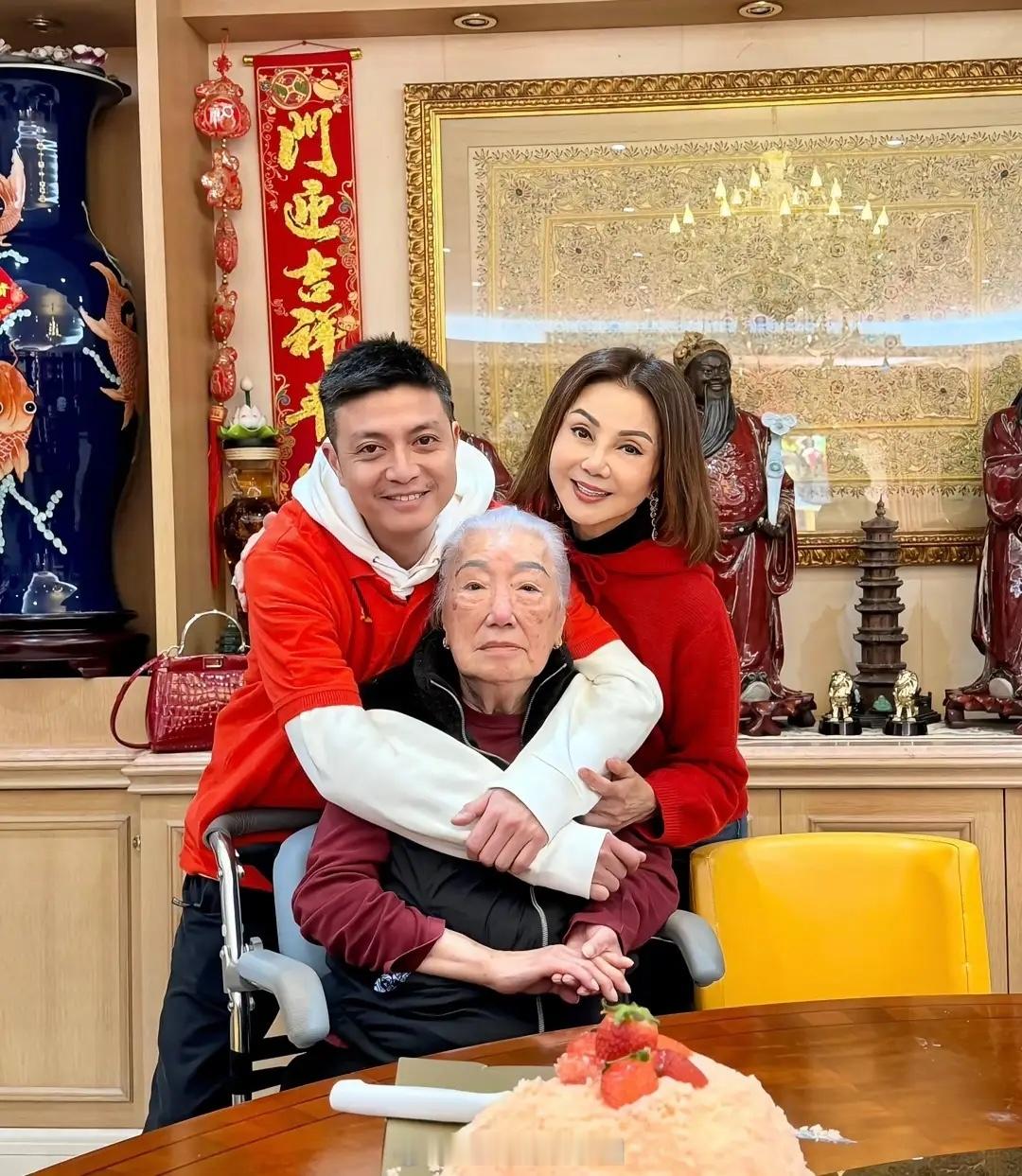 谢玲玲携四子女与女婿为前婆婆庆祝101岁生日,好有福气的一家子!