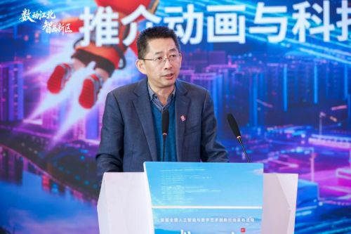 江北新区党工委袁传军副书记代表江北新区致辞。他指出,作为国家级新区,江北新区肩负着“三区一平台”建设的重大使命。近年来,新区坚持以文化赋能经济社会发展,锁定动画、短剧、游戏等数字文化产业新赛道,全力打造文化科技融合发展的创新策源地和产业新高地。他表示,本次活动依托中国动画学会的行业影响力与资源优势,结合江北新区的科创平台与产业载体,联动南京艺术学院深厚的艺术教育底蕴,必将共同构建面向未来的新兴产业生态,吸引更多科技与艺术人才汇聚新区,共筑青春活力新主城。
