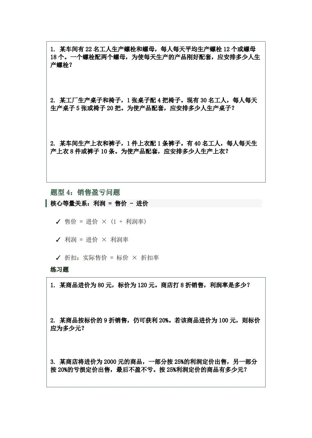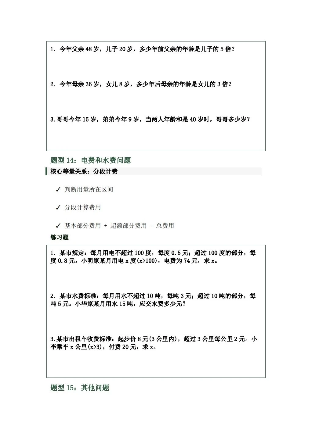 分享我的考试秘籍 数量关系 初中数学 一元一次方程实际问题,这次我给宝子们梳理清楚了,附件直接下载练习