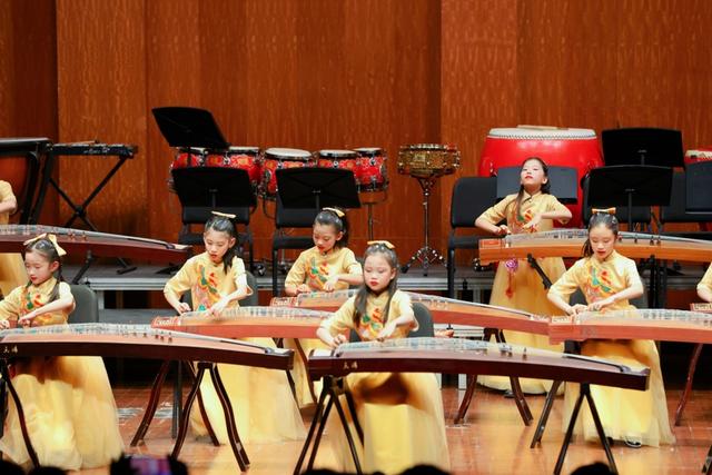 民族音乐板块亮点迭出,中小学古筝乐团带来的重奏《大中国》,在古韵中注入时代豪情,多声部交织宛如江河奔涌,深情抒发家国挚爱;学校输送至上音附中的优秀学生演绎的《天山风情》,引观众神游西域,尽显民族弓弦艺术的妙绝境界。童声合唱环节,合唱团先后献唱《宣言》与《嘀嗒滴嗒》,前者庄重饱满传递使命担当,后者轻快灵动洋溢童真童趣,一动一静相得益彰。