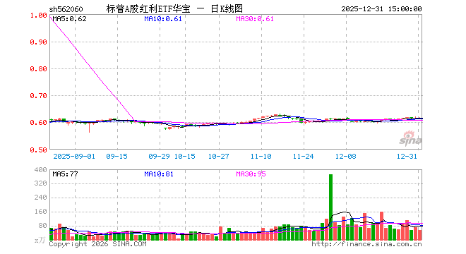 12月31日,标普A股红利ETF华宝(562060)跌0.16%,成交额3275.72万元。当日份额增加100.00万份,最新份额为40.20亿份,近20个交易日份额增加2.46亿份。最新资产净值计算值为24.78亿元。
