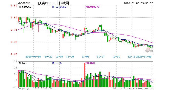 1月5日,疫苗ETF(562860)开盘涨0.00%,报0.677元。疫苗ETF(562860)重仓股方面,智飞生物开盘涨0.16%,万泰生物跌0.04%,沃森生物涨0.37%,荣昌生物跌0.12%,辽宁成大涨0.18%,康泰生物涨0.07%,长春高新跌0.05%,甘李药业跌0.21%,山东药玻涨1.10%,华兰生物涨0.13%。
