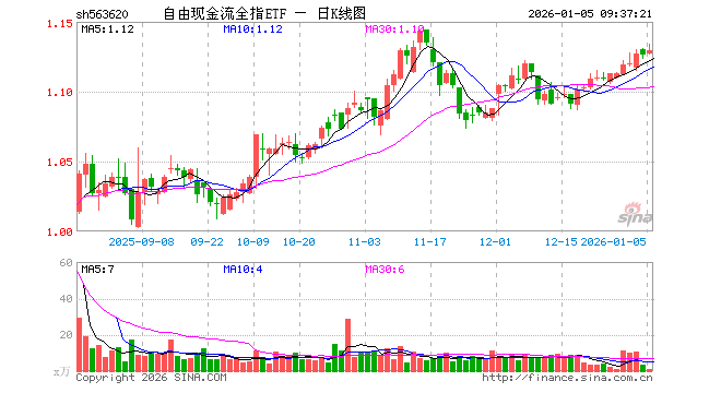 自由现金流全指ETF(563620)业绩比较基准为中证全指自由现金流指数收益率,管理人为兴业基金管理有限公司,基金经理为张诗悦、徐成城,成立(2025-08-06)以来回报为12.70%,近一个月回报为3.55%。