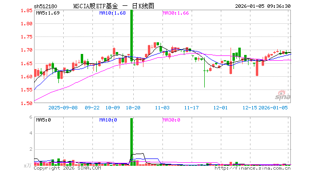 1月5日,MSCIA股ETF基金(512180)开盘涨0.36%,报1.690元。MSCIA股ETF基金(512180)重仓股方面,贵州茅台开盘涨0.57%,宁德时代涨0.75%,工业富联涨2.00%,招商银行涨0.90%,长江电力涨0.04%,紫金矿业涨2.41%,中国平安涨1.17%,比亚迪涨0.70%,寒武纪涨1.43%,海光信息涨1.38%。
