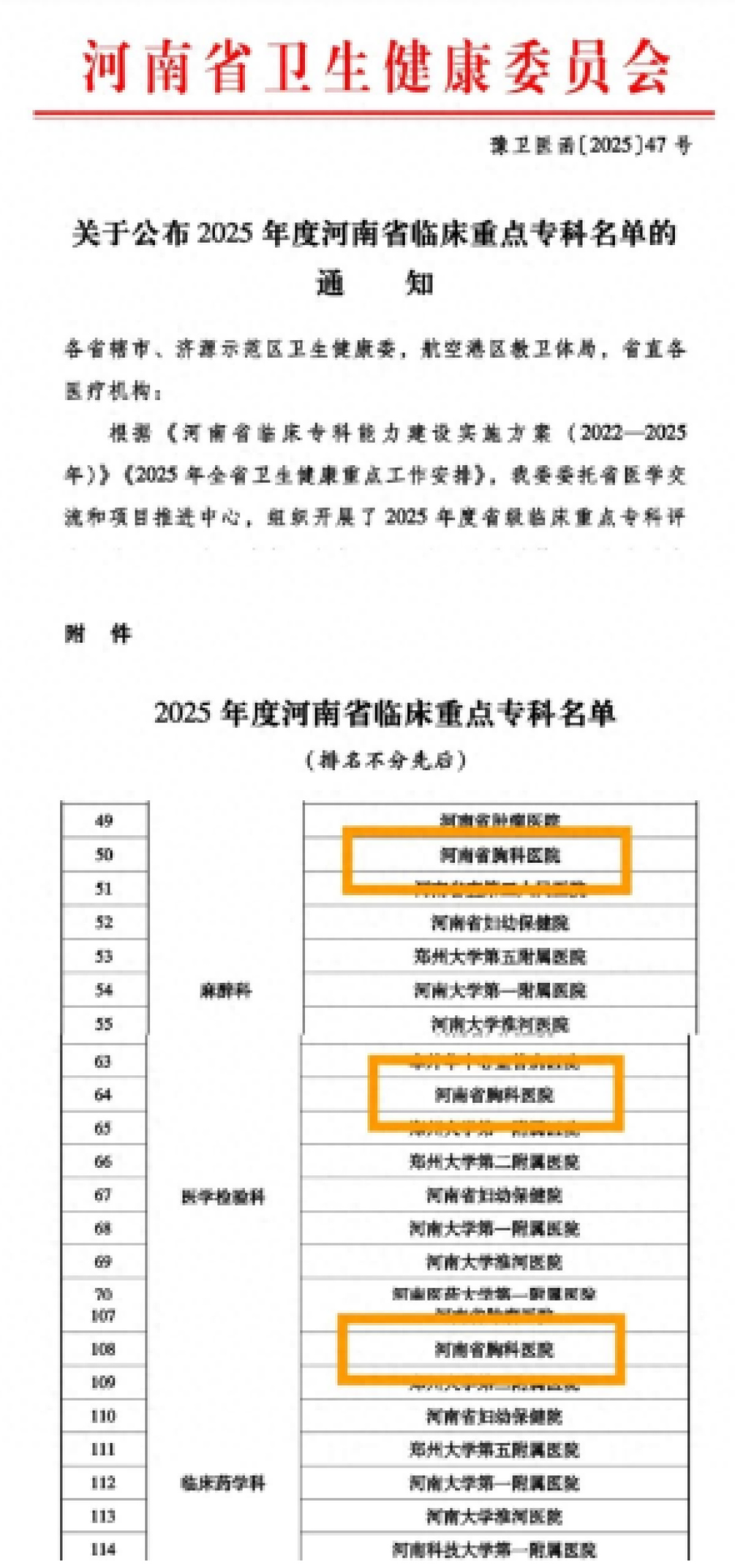 近日,河南省卫生健康委发布《关于公布2025年度河南省临床重点专科名单的通知》,河南省胸科医院麻醉科、医学检验科、临床药学科3个专科获批2025年度河南省临床重点专科,这一重要成果标志着医院在临床专科建设与医疗服务质量提升方面取得了新的突破。