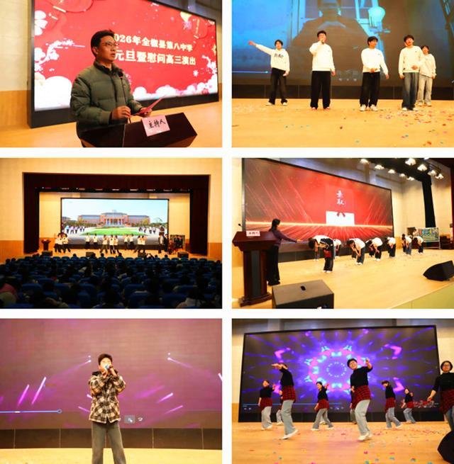 日月开新元,万象起新篇。12月31日下午,全椒县第八中学在广益会堂隆重举行2026年庆元旦暨慰问高三文艺演出,全椒县第八中学校长计鹏飞发表新年致辞。师生们欢聚一堂,用歌曲、诗朗诵、乐器演奏、舞蹈、小品等表演形式,一起送别硕果累累的2025年,迎接充满希望的2026年。