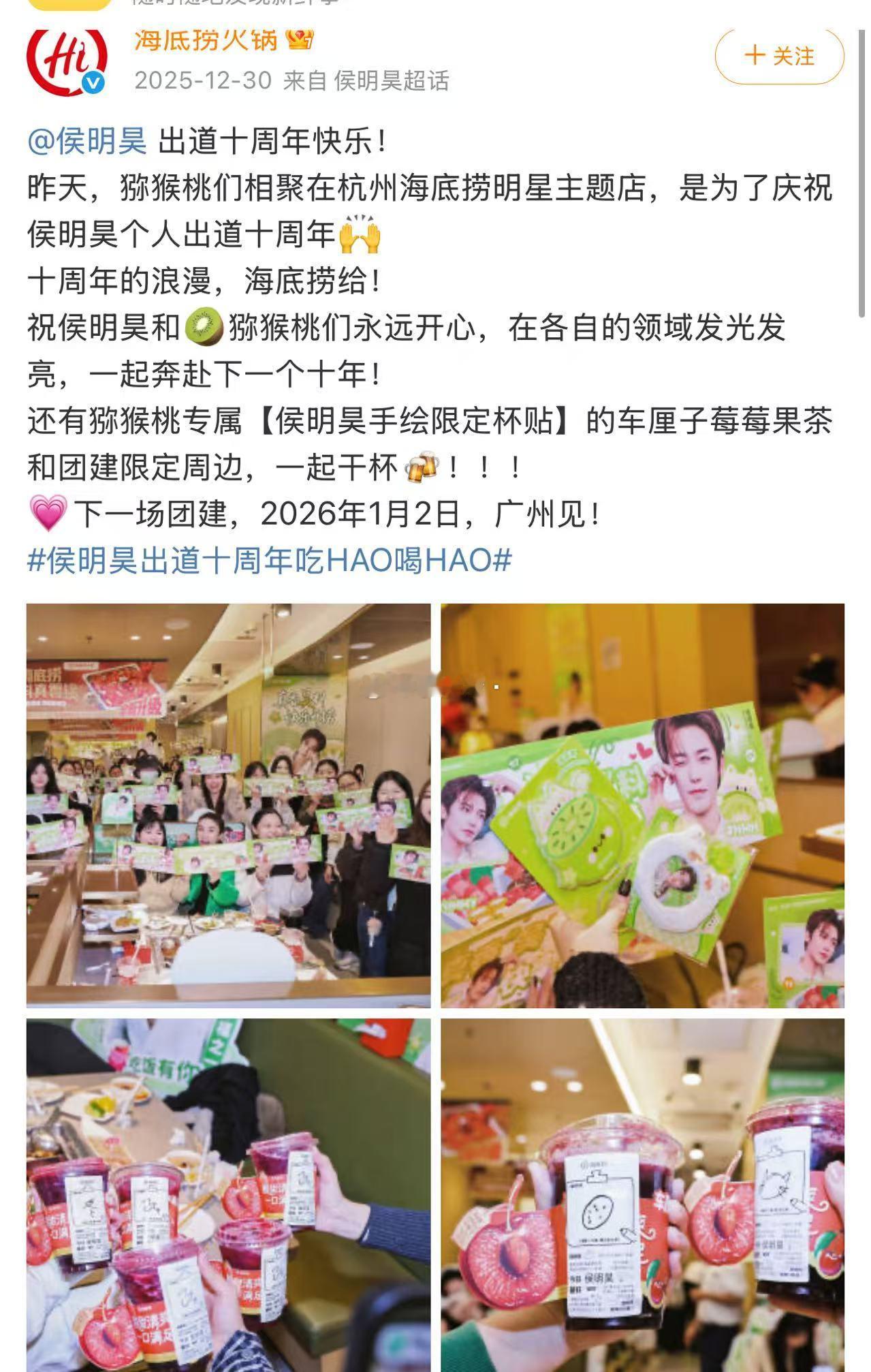 不知不觉侯明昊出道10周年了!在这个特殊的日子里,海底捞霸霸真的很会啊!粉丝也在