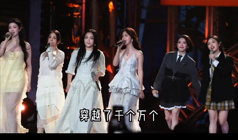 王楚然真的是明星中的明星,大合唱时,站在最边边上的她好像和其他人不在一个图层,美的太突出了,别的不说,王楚然的美貌真的毋容置疑,不管把王楚然放在哪个角角落落,都遮掩不住她的光彩,王楚然的身高比其他人整整高了一头,淡淡的,静静的站在那里就能轻而易举的俘获大家的目光,她和戴佩妮,谭松韵,沈月站在一起的画面像极了肤白貌美大长腿的白雪公主和七个小矮人……