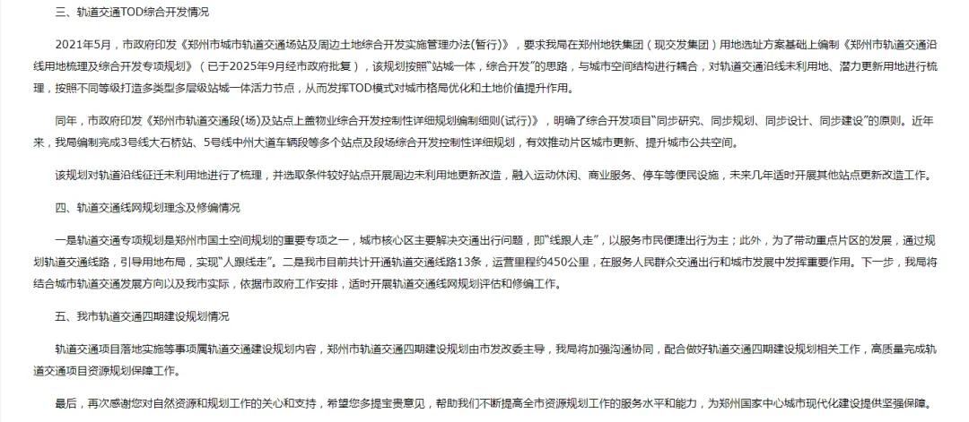 此外,关于轨道交通四期建设规划,市自然资源和规划局表示将配合市发改委主导的相关工作,做好资源规划保障。