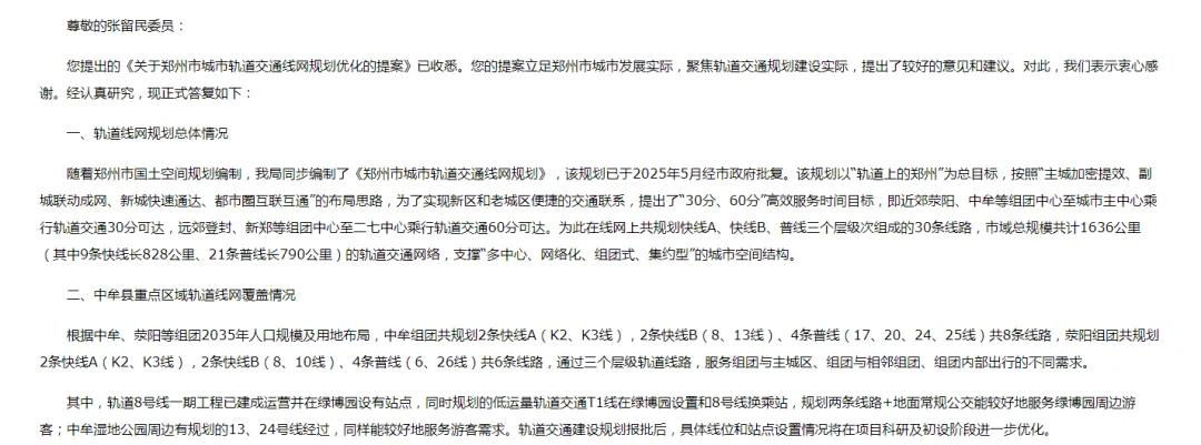 据郑州市人民政府消息,近日,郑州市自然资源和规划局在答复政协委员提案时披露,《郑州市城市轨道交通线网规划》已于2025年5月经市政府批复。该规划以构建“轨道上的郑州”为总目标,旨在支撑“多中心、网络化、组团式、集约型”的城市空间结构。
