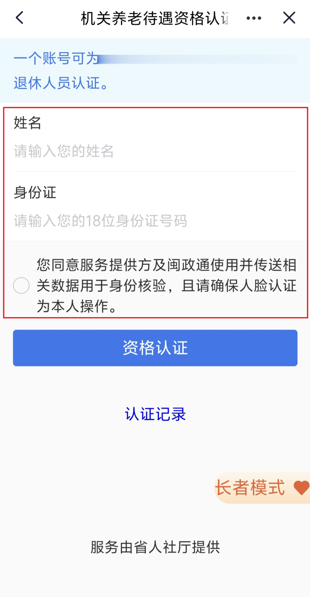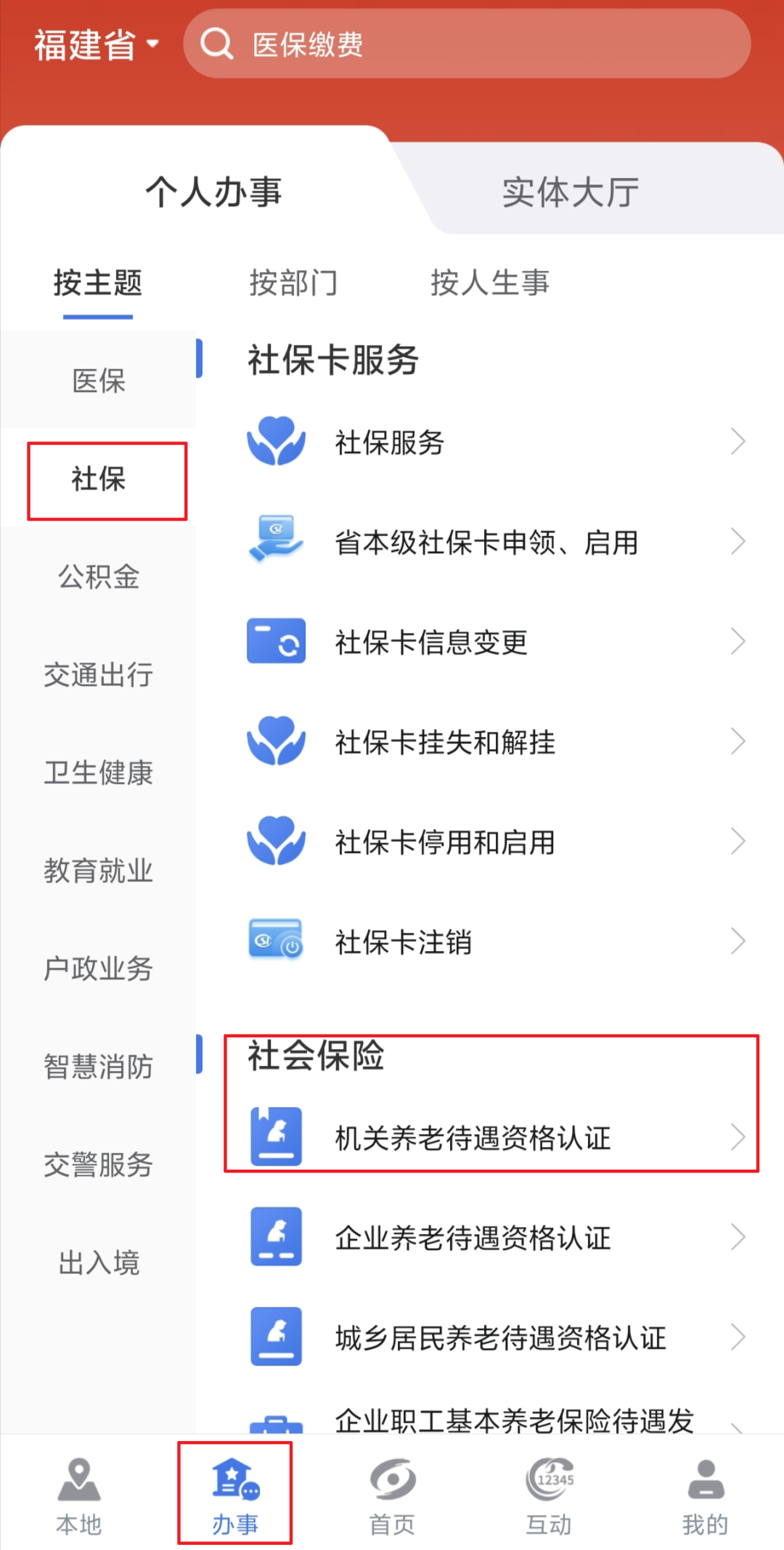 1.离退休人员可通过手机“闽政通”App完成人脸识别自助认证,具体操作流程为:打开“闽政通”手机App→点击屏幕下方“办事”→点击左侧栏“社保”→下拉到“社会保险”→点击“机关养老待遇资格认证”→输入“姓名”和“身份证号码”→按相应的提示完成人脸识别认证。如果参保人员本人手机无法进行认证,也可借用亲友手机完成。
