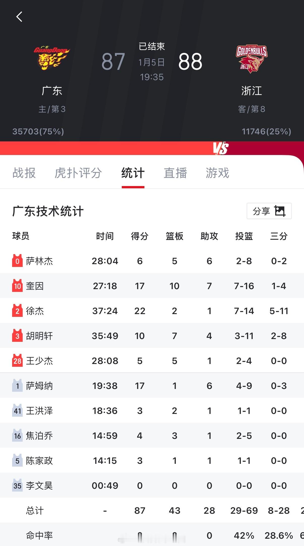 胡明轩广东男篮vs浙江男篮 🏀CBA联赛25-26赛季常规赛第11轮⛹️ 加时赛结束 广东东阳光 87 🆚 88 浙江稠州金租数据方面:🐯胡明轩10分7篮板4助攻1抢断 萨林杰6分5篮板6助攻 奎因17分10篮板 7助攻 萨姆纳17分6助攻 徐杰22分2篮板 王少杰5分5篮板 王洪泽3分2篮板 焦泊乔4分3篮板 陈家政3分1篮板 下一场:1月7日 广东vs深圳记得收看哟~ 📺