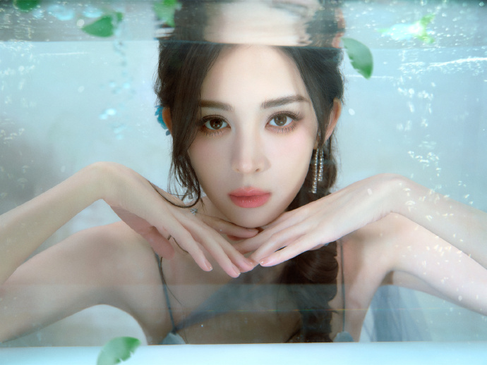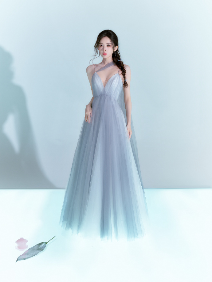 古力娜扎 灰蓝薄纱垂落出玉背的弧度,V领裁开的温柔里,红唇轻抿便藏住了半分星