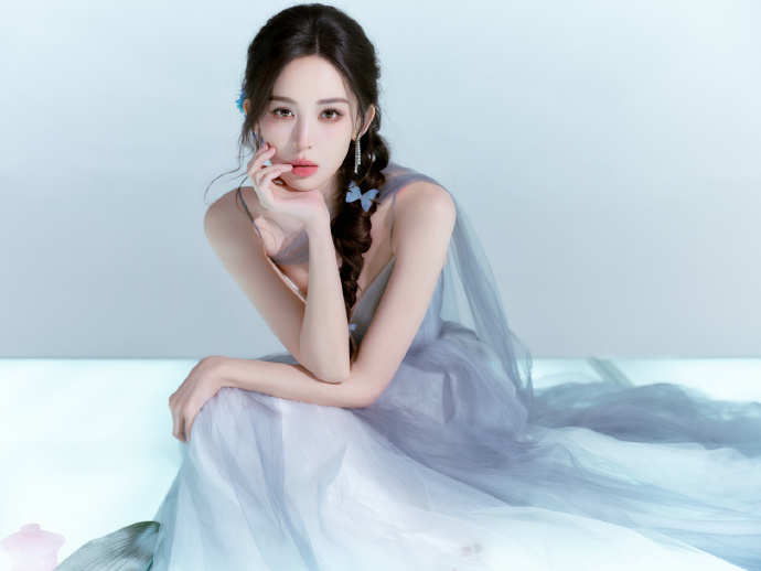 娜扎雾蓝纱裙 娜扎雾蓝纱裙,娜扎追剧团造型出图,完全仙女来的,把人美晕的程度