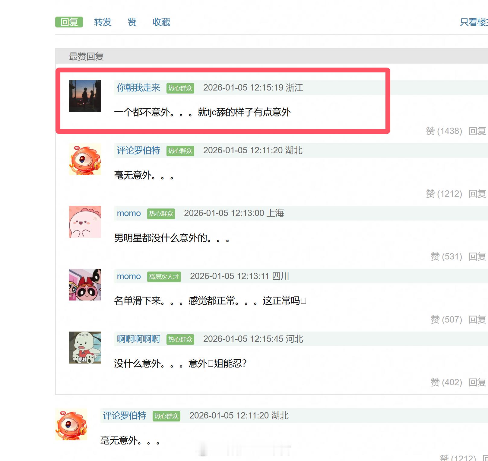 豆瓣投票:这次🍉的几位男嘉宾,你最意外的是? 热评:一个都不意外。。。就tjc
