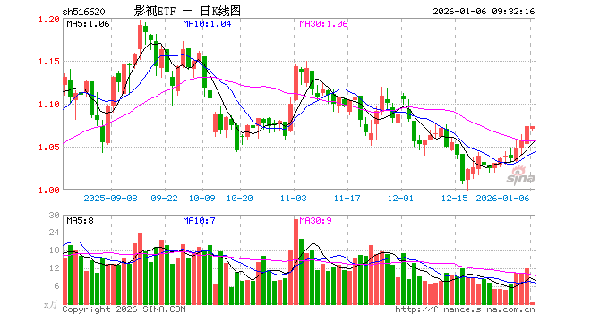 1月6日,影视ETF(516620)开盘跌0.28%,报1.070元。影视ETF(516620)重仓股方面,芒果超媒开盘跌0.20%,完美世界跌0.95%,光线传媒涨0.06%,东方明珠跌0.20%,捷成股份跌0.70%,万达电影涨0.09%,华策影视涨0.12%,中国电影跌0.45%,视觉中国跌1.67%,吉视传媒跌0.56%。