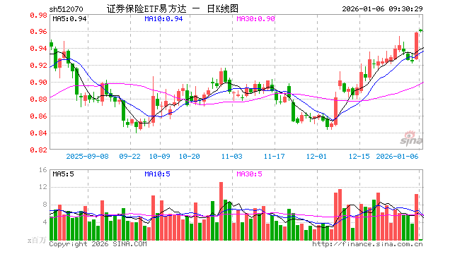 1月6日,证券保险ETF易方达(512070)开盘涨0.31%,报0.961元。证券保险ETF易方达(512070)重仓股方面,中国平安开盘涨0.06%,东方财富跌0.29%,中信证券涨0.10%,国泰海通涨0.29%,中国太保涨1.20%,华泰证券跌0.21%,中国人寿涨0.00%,广发证券跌0.61%,招商证券跌0.06%,东方证券跌0.27%。