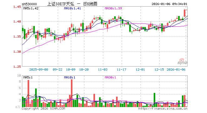 1月6日,上证50ETF天弘(530000)开盘跌0.07%,报1.437元。上证50ETF天弘(530000)重仓股方面,贵州茅台开盘涨0.46%,中国平安涨0.06%,招商银行涨0.24%,紫金矿业涨1.69%,长江电力涨0.07%,兴业银行涨0.00%,恒瑞医药涨0.44%,中信证券涨0.10%,药明康德涨0.59%,中芯国际跌0.73%。