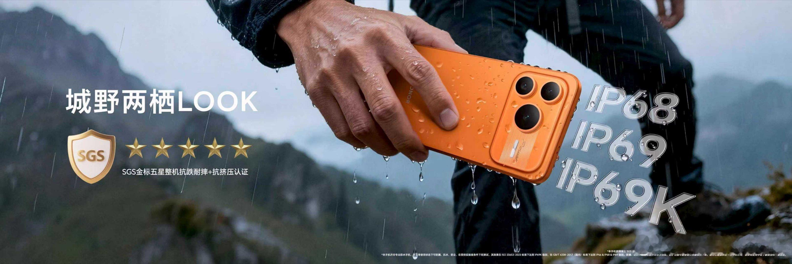 荣耀Power2不怕浇不怕造 在防护上实现了全面突破。防水方面,集齐IP68、IP69、IP69K满级防尘防水,无惧高压喷淋与长时间浸泡,守护机身周全;可靠方面,创新采用四角榫卯卸力金属中框,抗摔能力提升25%,抗弯能力提升22%,并已通过金标五星整机抗跌耐摔+抗挤压认证。全场景满级的防护加持,让荣耀Power2既能穿街过巷,也能从容穿山越岭,真正成为用户信赖的城野两栖全能伙伴。