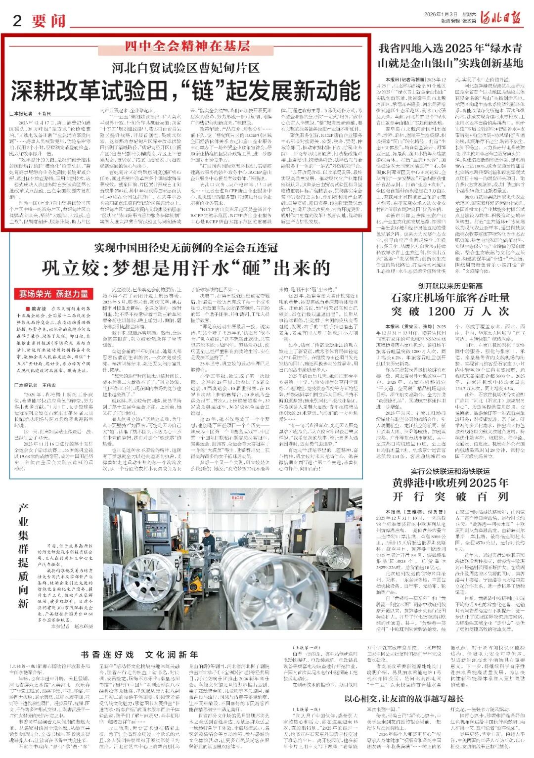 曹妃甸片区始终聚焦制度创新核心任务,通过系统性改革在多个领域取得显著成效。截至目前,片区累计形成自主创新成果258项,其中40项获得国家层面认可,49项在全省复制推广。在去年举办的第四届京津冀自贸试验区联席活动上,曹妃甸片区“津冀外贸内支线集装箱船舶‘区块化’协同海事监管与服务保障机制”案例入选京津冀自贸试验区协同创新成果。“落实全会精神,我们正加快开展更深层次的改革,努力形成一批可复制、可推广的曹妃甸创新成果。”程鹏说。