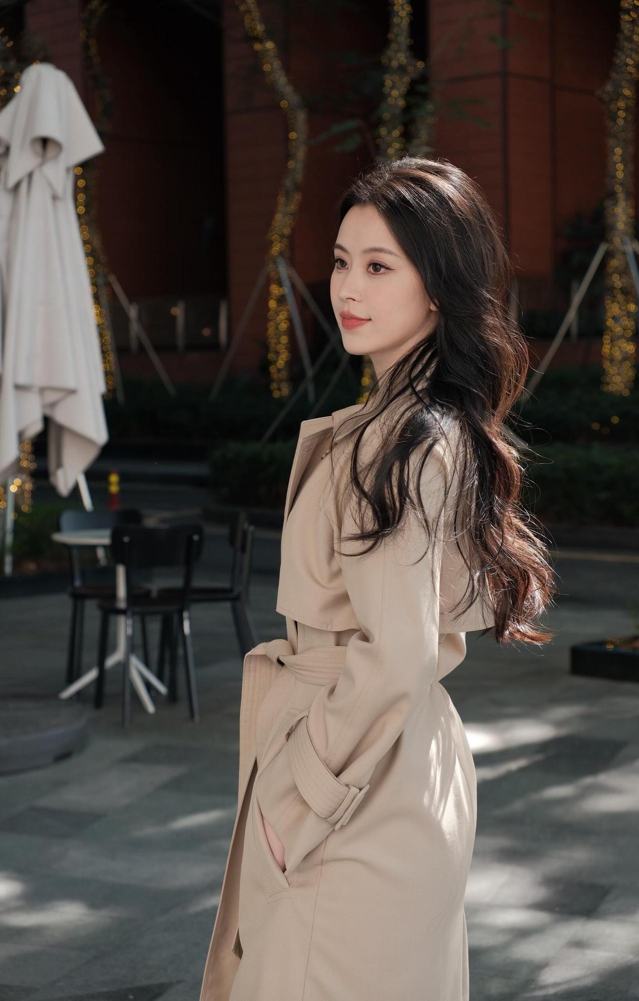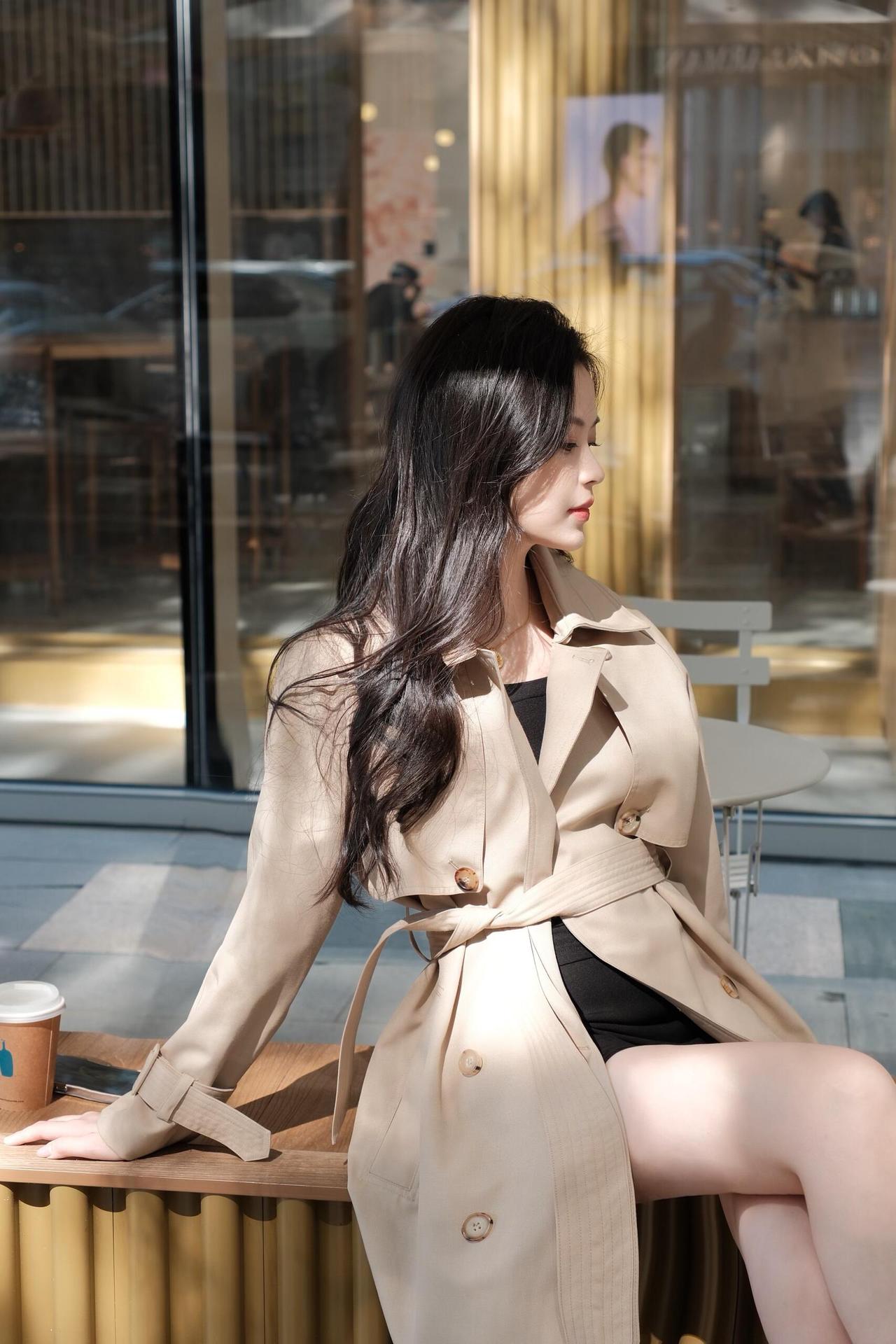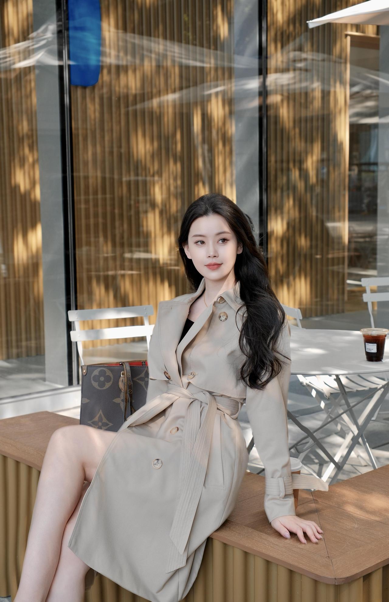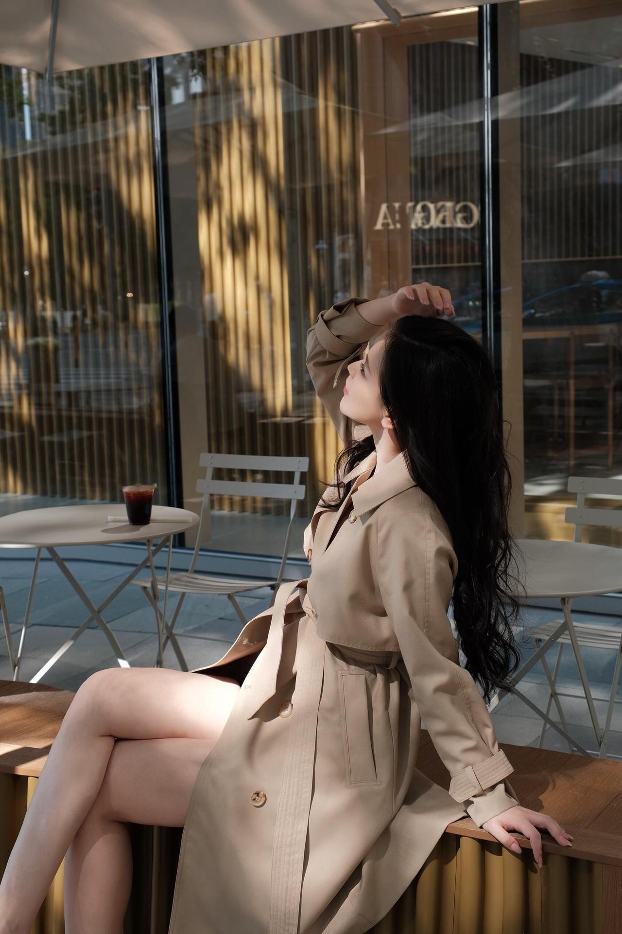 午后咖啡座的风 手刚触到纸杯时 还带着热烘烘的温 蓝标贴在杯身侧 蹭得指尖也沾了点浅蓝的印 卡其色风衣的领角被风掀了下 我抬手按了按 腰带松松系着 布料软乎乎地贴在身上 像裹了一团晒暖的云 玻璃墙映着金棕色的柱 阳光斜斜打过来 把柱影拓在玻璃上 一格一格的,像被拉长的琴键 蓝瓶咖啡的字在玻璃上反着光 旁边的金属桌椅空着 一杯冰美式搁在桌角 吸管斜斜插着,凝了层细水珠 转身往红砖墙那边走时 风衣的下摆扫过地面的光斑 墙根的绿植绕着金灯串 珠子似的,串着没亮的光 风从枝叶间钻过来 撩得发梢贴在颊边 我把插在风衣口袋里的手又往里缩了缩 掌心还留着咖啡杯的余温 又坐回木凳上时 阳光挪了位置 从膝头爬到了脚边 纸杯搁在身侧的木面上 杯底的圈印慢慢干了 听远处有车开过的轻响 混着咖啡店里飘出来的奶泡香 忽然觉得 这都市里的午后 就该是这样的 风是软的,阳光是暖的 手里的咖啡是热的 风衣裹着一身的松弛 不用赶时间,不用想琐事 就坐在这光里 看影子慢慢晃 看云从玻璃外的天顶飘过去 连发丝被风吹乱的模样 都觉得是刚刚好的温柔 后来风又大了些 把风衣的袖口吹得鼓起来 像揣了两只调皮的小鸽子 我伸手拢了拢 指尖碰到袖口的纽扣 凉丝丝的,像刚从冰箱里摸出的玻璃珠 纸杯里的咖啡喝了大半 剩下的一点在杯底晃荡 映着头顶的光 碎成一小片亮晶晶的星 就这么坐着,直到阳光又斜了些 把红砖墙的灯串照得发亮 才想起该起身走了 却又舍不得这片刻的闲 于是又坐了会儿 听风穿过灯串的缝隙 发出细碎的响 像有人在耳边轻轻哼着歌