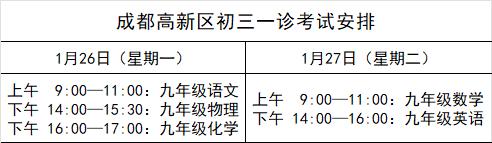 近日,家长间分享,青羊区与高新区初三年级“一诊”考试定于1月26日至27日:首日考语文、物理、化学,次日考数学、英语,科目设置与考试时长均与中考保持一致。 本次一诊考试会影响指标到校成绩,所以这次考试至关重要! 锦江区:八下20%+一诊40%+二诊40%; 成华区:七下10%+八下20%+一诊30%+二诊40%; 武侯区:七上10%+七下10%+八上10%+八下10%+一诊20%+二诊40%; 金牛区:七上10%+七下10%+八上15%+八下15%+一诊20%+二诊30%; 青羊区:七下5%+八下15%+一诊20%+二诊60%; 高新区:八下20%+九上30%+一诊50%; 天府新区:七下20%+八下30%+二诊50%
