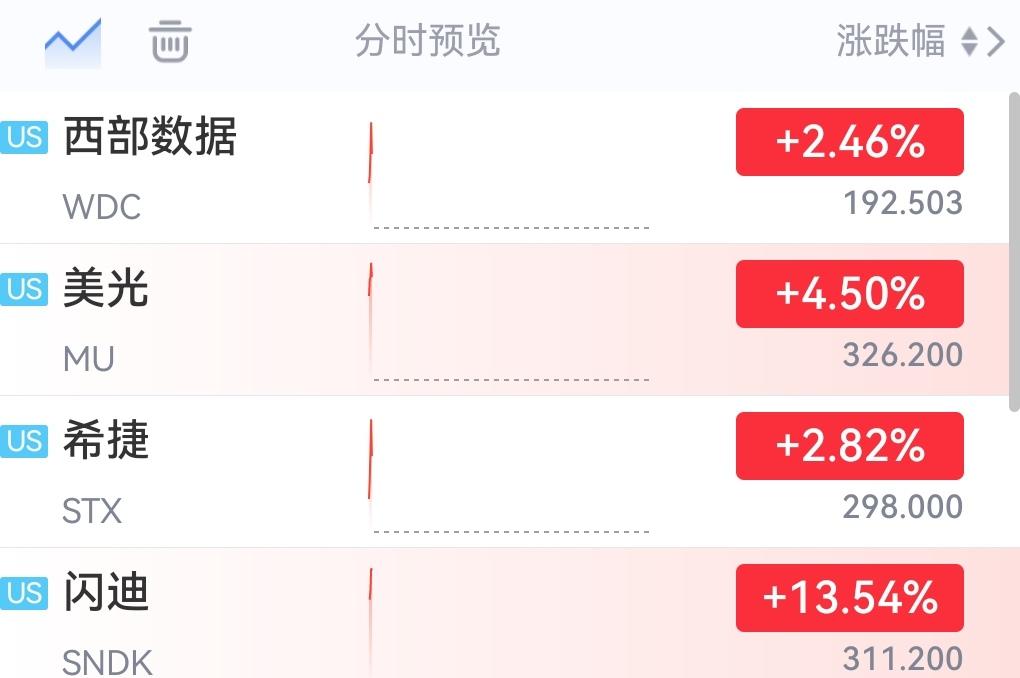 今天卖掉A股存储芯片的,明天可能要拍肿大腿了!美股存储芯片龙头闪迪开盘涨超13%