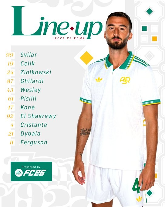 直播吧1月7日讯意甲第19轮比赛,罗马在客场挑战莱切。目前,罗马已经公布了本场比赛首发阵容,迪巴拉出战,埃文·弗格森、沙拉维在列。