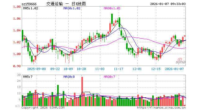 1月7日,交通运输ETF(159666)开盘涨0.10%,报1.029元。交通运输ETF(159666)重仓股方面,京沪高铁开盘涨0.00%,顺丰控股涨0.15%,中远海控涨0.07%,大秦铁路跌0.38%,上海机场涨0.12%,中国东航跌0.33%,南方航空涨0.25%,圆通速递涨0.00%,中国国航涨0.22%,招商轮船涨1.20%。
