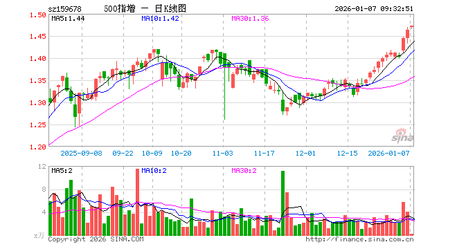 1月7日,中证500增强ETF(159678)开盘涨0.41%,报1.469元。中证500增强ETF(159678)重仓股方面,胜宏科技开盘跌0.69%,华工科技涨0.01%,金风科技涨2.08%,巨人网络跌0.75%,完美世界跌0.84%,九号公司跌0.12%,金诚信跌0.70%,高德红外涨0.00%,瑞芯微涨0.00%,圣农发展涨0.00%。
