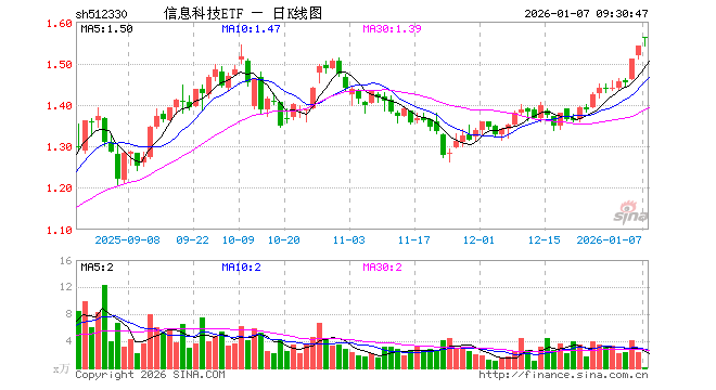 1月7日,信息科技ETF(512330)开盘涨1.30%,报1.561元。信息科技ETF(512330)重仓股方面,胜宏科技开盘跌0.69%,华工科技涨0.01%,芯原股份涨2.82%,指南针跌2.13%,通富微电涨1.68%,润和软件跌0.21%,瑞芯微涨0.00%,长川科技涨3.30%,协创数据涨5.63%,华海清科涨2.41%。