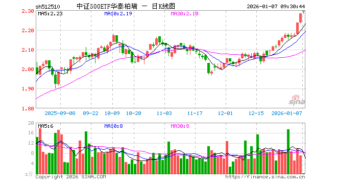 1月7日,中证500ETF华泰柏瑞(512510)开盘涨0.57%,报2.295元。中证500ETF华泰柏瑞(512510)重仓股方面,胜宏科技开盘跌0.69%,华工科技涨0.01%,芯原股份涨2.82%,指南针跌2.13%,先导智能涨0.02%,巨人网络跌0.75%,卧龙电驱跌1.12%,华海清科涨2.41%,欣旺达跌0.19%,通富微电涨1.68%。
