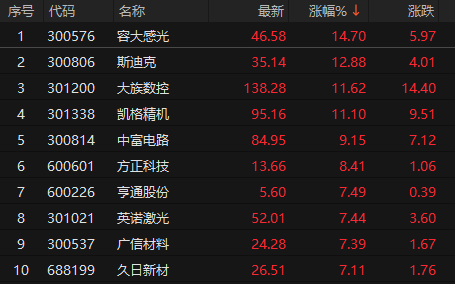 上证报中国证券网讯1月7日早盘,PCB概念股震荡走强,截至11时12分,容大感光、斯迪克、大族数控、凯格精机涨超10%,中富电路、方正科技等跟涨。