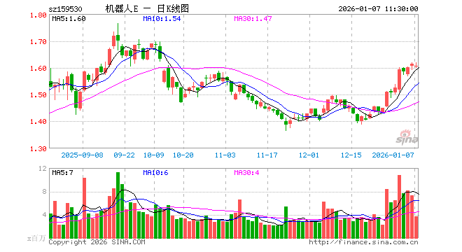 1月7日,截止午间收盘,机器人ETF易方达(159530)跌0.62%,报1.605元,成交额5.88亿元。机器人ETF易方达(159530)重仓股方面,双环传动截止午盘跌0.84%,科沃斯跌1.85%,石头科技跌1.44%,绿的谐波跌3.52%,机器人跌1.02%,拓普集团跌1.64%,鸣志电器跌1.06%,埃斯顿涨0.17%,汇川技术跌0.20%,拓斯达跌1.10%。