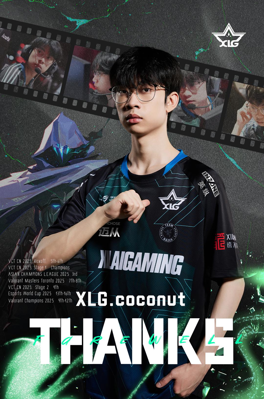 感谢coconut为XLG付出的一切汗水与努力。愿你在未来的职业道路上继续闪耀,勇往直前,我们未来赛场再见!