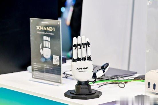 在灵巧操作展示区,星动XHAND1仿人五指灵巧手以国内首创的关节全直驱方案,获得现场嘉宾广泛关注。这款灵巧手专为AI应用开发而生,聚焦精细操作场景适配需求——与人手尺寸大小相仿,搭载12个高主动自由度,单手最大抓握力达80N,可提起25kg重物,响应速度快至每秒10次鼠标点击。在智能适配层面,星动XHAND1依托全链条遥操作解决方案,可高效学习人类操作策略,兼容AppleVisionPro、Manus手套、Pico、MetaQuest等多种主流设备;与ERA-42具身大脑协同,目前已掌握超100种复杂操作技能,涵盖捏取轻薄快递面单、使用移液枪精准吸取液体、用螺钉枪完成精密打螺丝等场景。