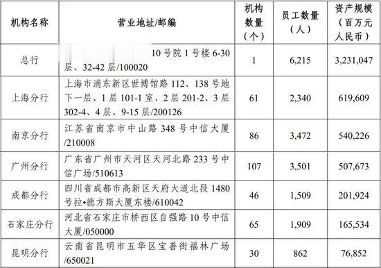 拉长时间线看,中信银行现任副行长胡罡、贺劲松都曾担任过上海分行行长。从规模来看,上海分行是中信银行第三大分行,仅次于北京分行、杭州分行;截至2025年6月末,上海分行资产总额为6196.09亿元,有员工2,340人,下辖61个分支机构。